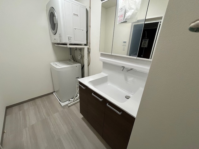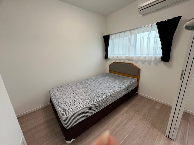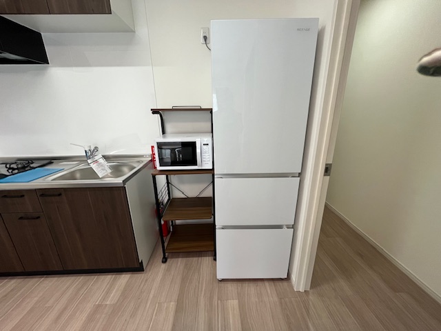 浴槽付き、バス・トイレ別、ベッド、テーブル、チェア2個、冷蔵庫、ガスコンロ、洗濯機、ガス乾燥機、電子レンジ、クーラー、カーテン、ソファ(2人掛け)、防犯カメラ、駐輪場、Wifi付き